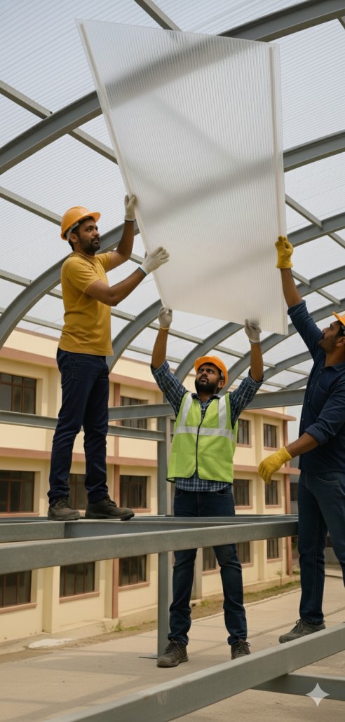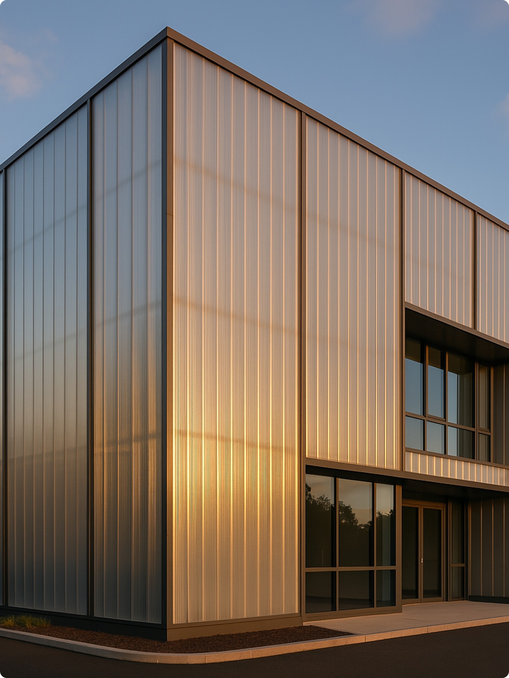 Multicell panels feature a cellular polycarbonate core for strength, insulation, and light diffusion. Ideal for both roofing and cladding, they combine engineering precision with architectural elegance. Perfect for stadiums, airports, warehouses, and premium commercial buildings.