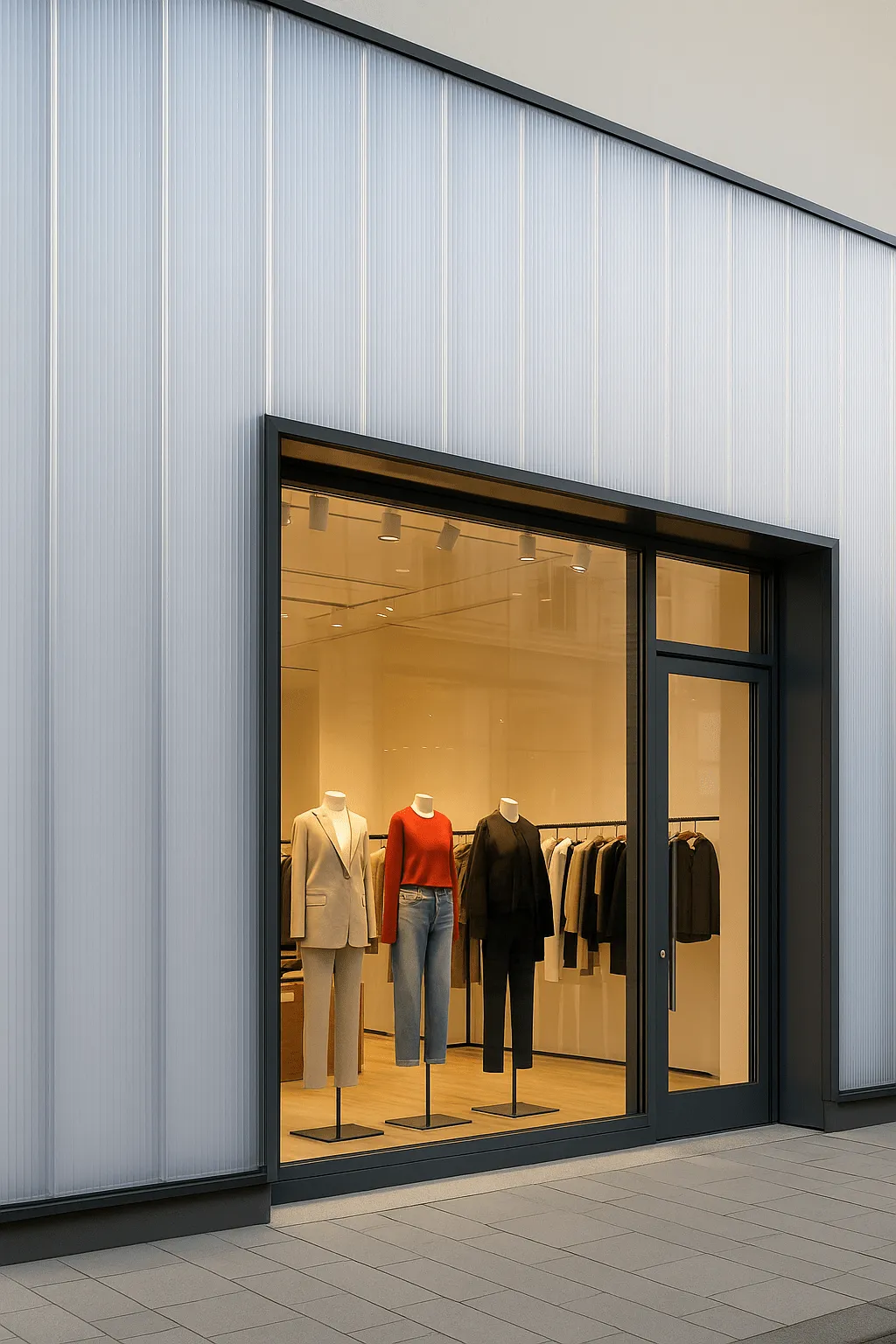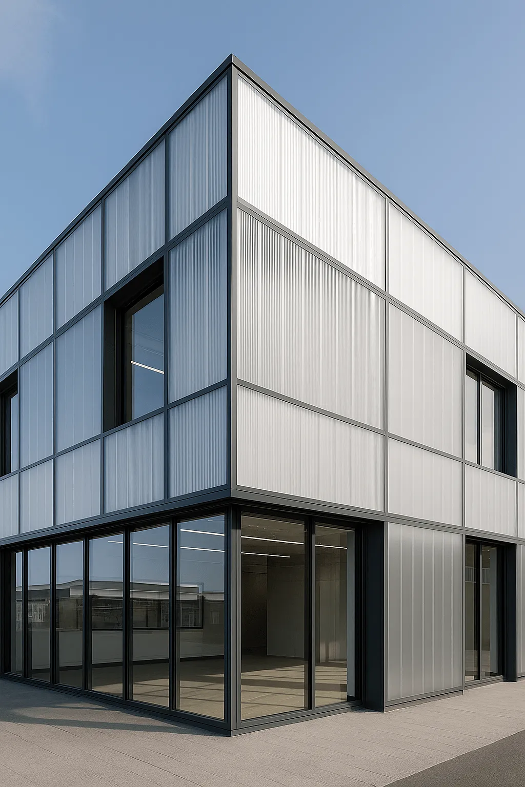 Designed for modern buildings, the Pro Facade System delivers the sleek, glass-like finish of high-end architecture — without the weight or fragility of glass. Its advanced cladding system integrates UV-resistant polycarbonate with hidden aluminium connectors to deliver both visual impact and long-term durability.