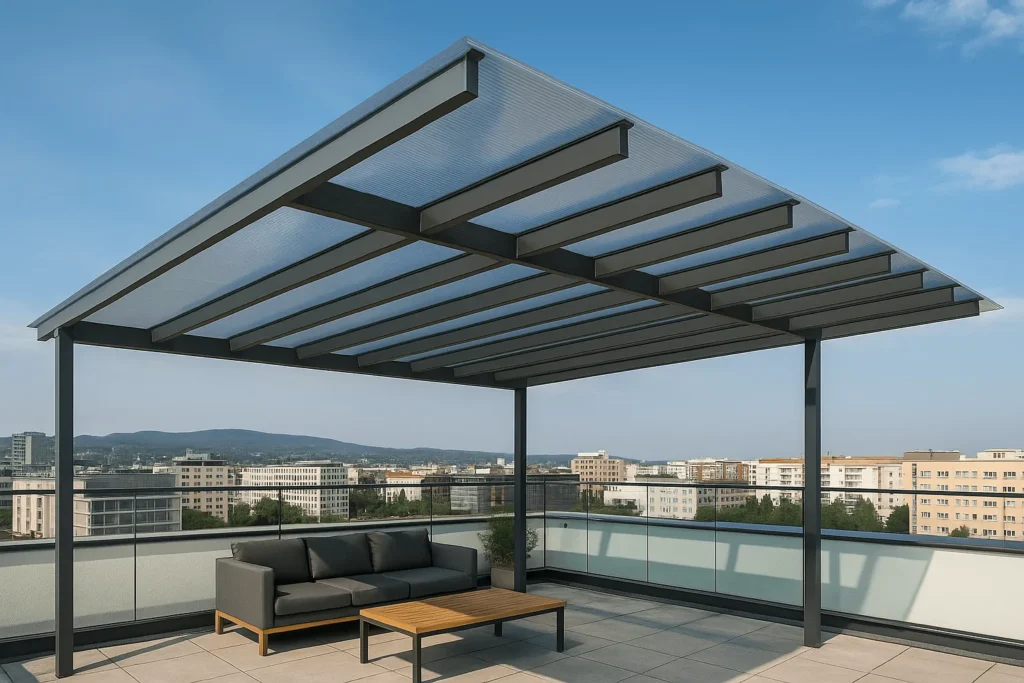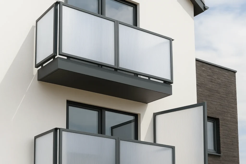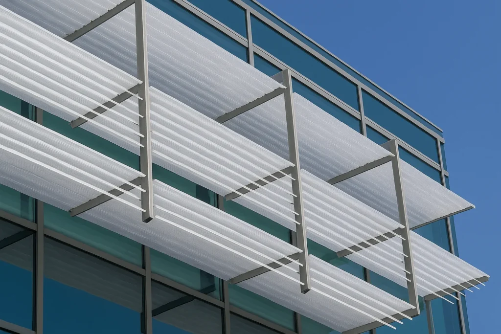 Polycarbonate façade solution with a clean-line, interlocking panel design.