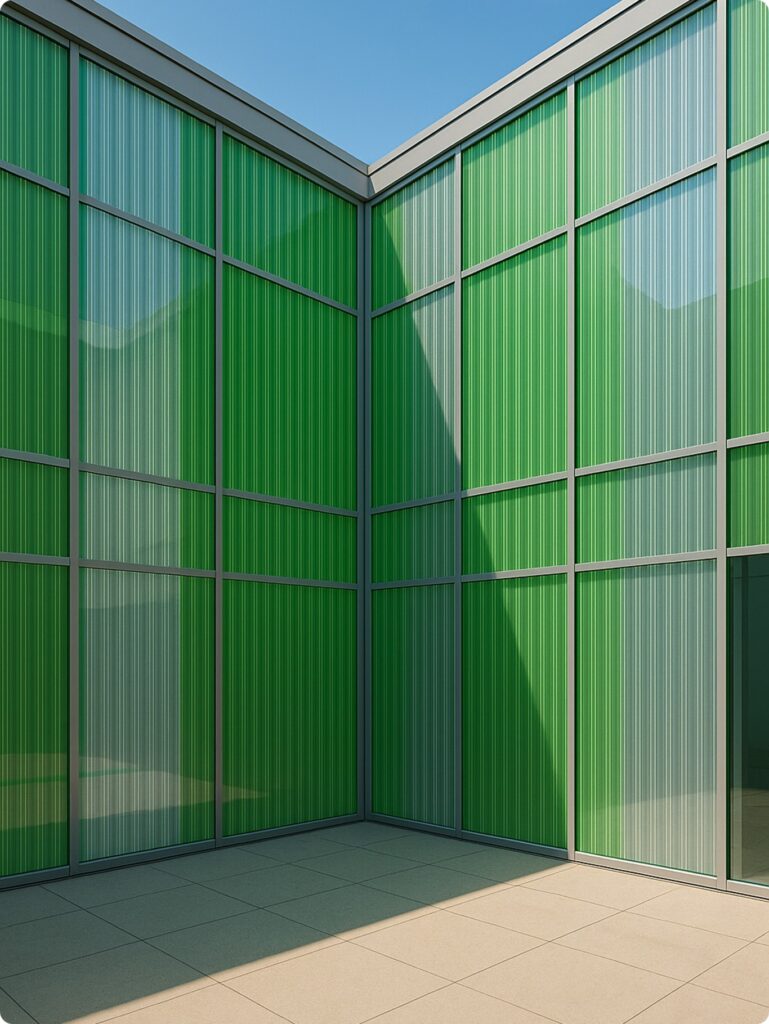 Our vibrant, high-performance VIVID panels bring together advanced Solar Screening technology and Tertiary Colour Fusion to suit a wide range of architectural and industrial applications — ensuring exceptional daylighting, thermal comfort, and striking aesthetics.